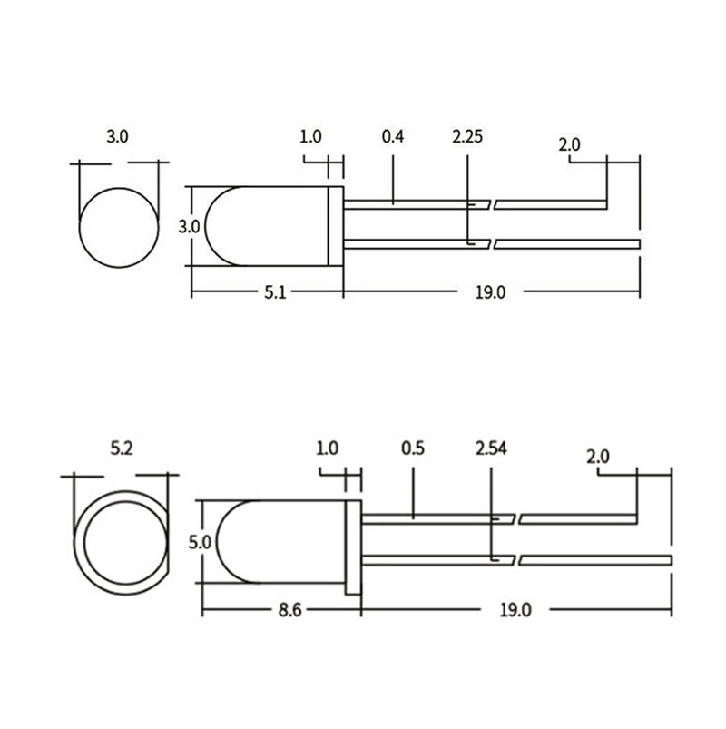 F3/F5 Surface Mount 3/5MM Round Head DIP White, Red, Orange, Yellow, Green, Blue and Purple LED Light Chips Light Emitting Diodes