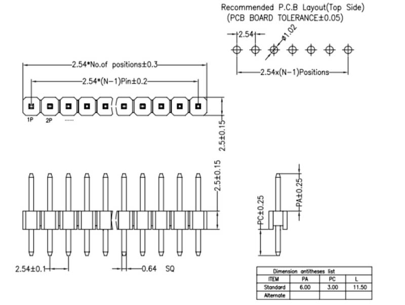 Product Name: 2.54 Single Row Pin Straight