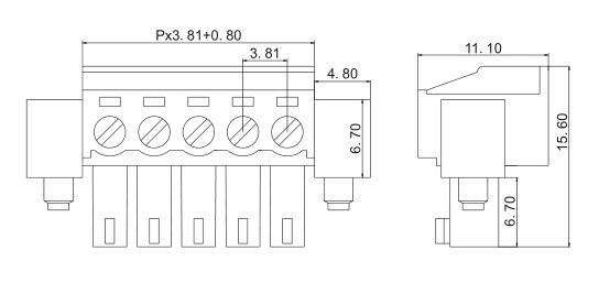 Product Name: 3.81mm 15EDGKM PCB Plug 2EDG Bent Straight Pin+Female Socket with Fixed Ears