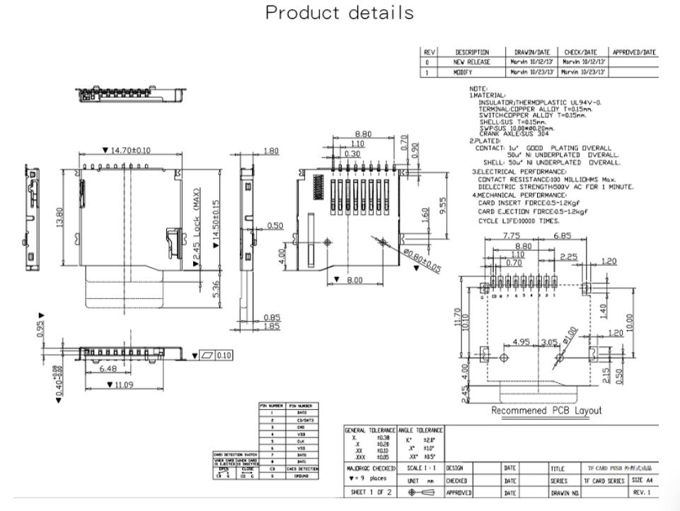 TF Card Slot Self Firing 9P Memory Card Micro SD Card Slot (9PIN) Storage Card Slot – PUSH Card Slot