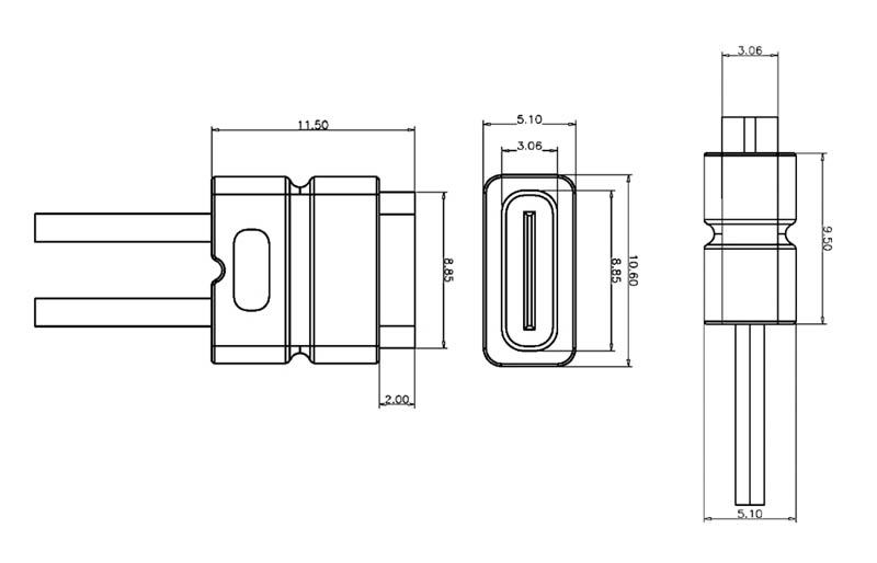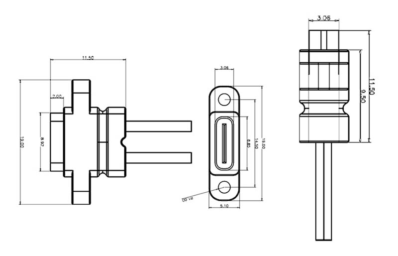 USB Type-C Soldering Male Socket with 2P Wire and Charging Male Connector Waterproof TYPE-C Female Connector DIY with Installation Holes