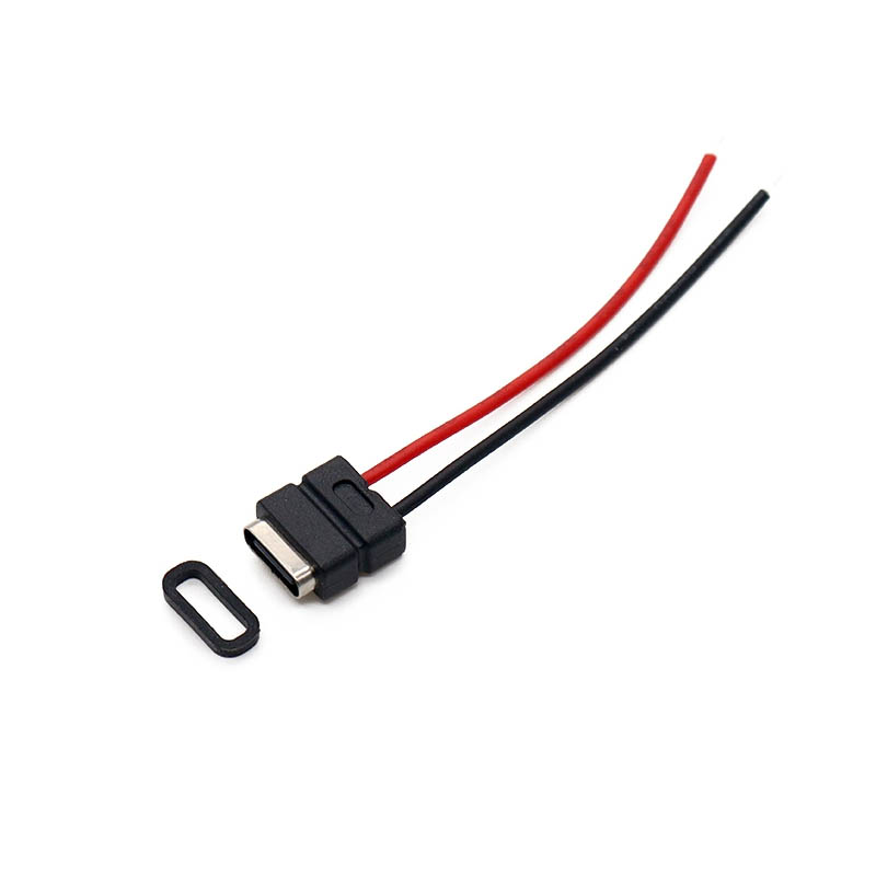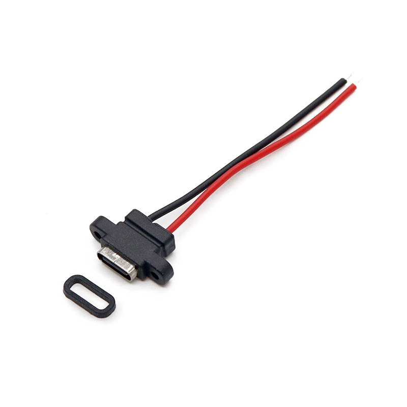 USB Type-C Soldering Male Socket with 2P Wire and Charging Male Connector Waterproof TYPE-C Female Connector DIY with Installation Holes